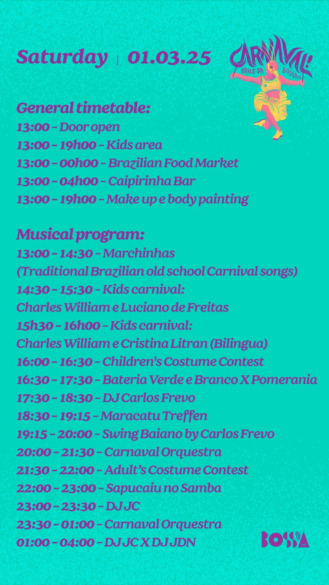 - DJ JC: Spinning the biggest hits from Brazil’s Carnival history.